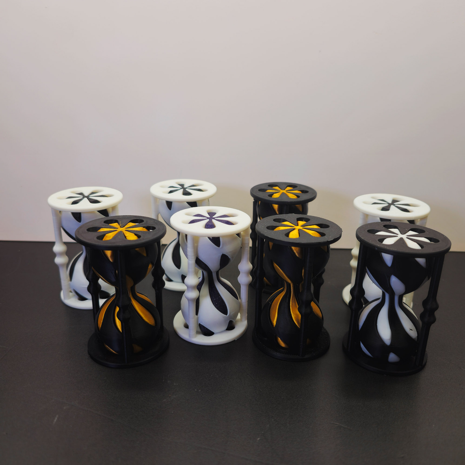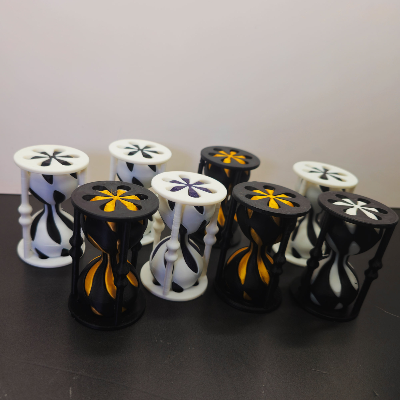 Îți prezentăm clepsidra antistres, un produs fascinant realizat prin imprimare 3D, care aduce o notă de eleganță și relaxare în orice spațiu. Fabricată prin printare 3D din PLA această clepsidră nu doar că arată grozav, dar oferă și un efect calmant pentru minte.