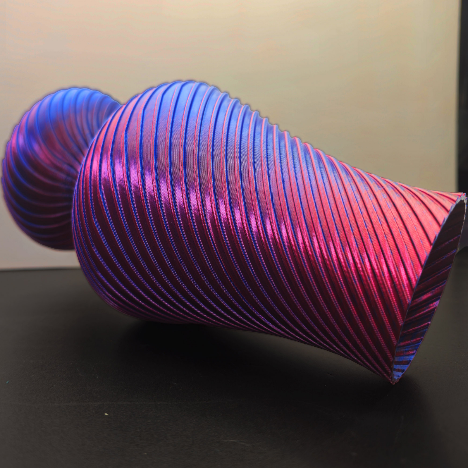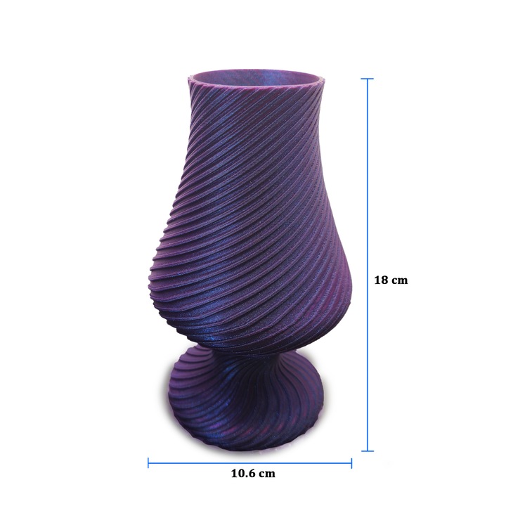 • Material Movaliu cu Sclipici: Realizată dintr-un PLA de culoare movaliu, vaza are un finisaj care imită aspectul unei galaxii, cu un sclipici strălucitor ce captează lumina și adaugă o notă de magie.