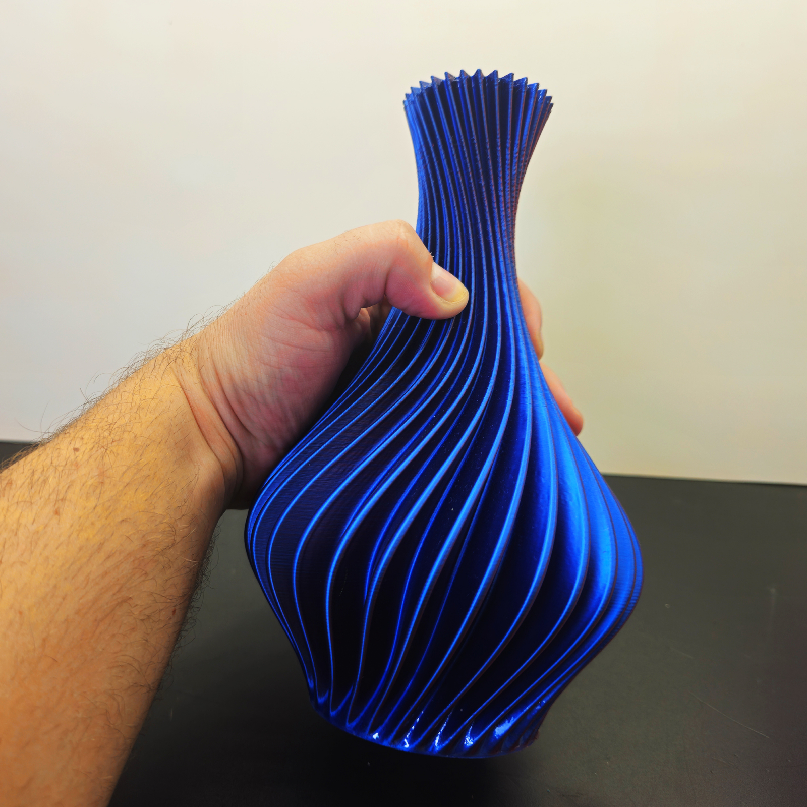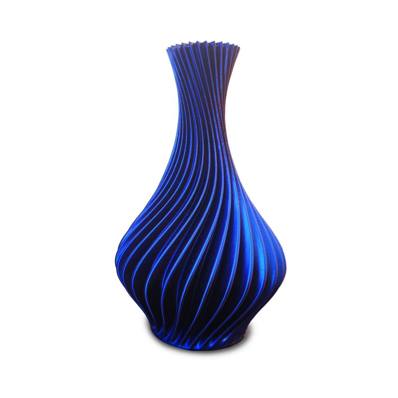 Material Multicolor cu Efect Metalizat: Vaza este realizată dintr-un PLA special, care oferă un aspect multicolor și un efect metalizat. Această estetică sofisticată face din vaza un accent ideal pentru birou, salon sau orice altă încăpere.