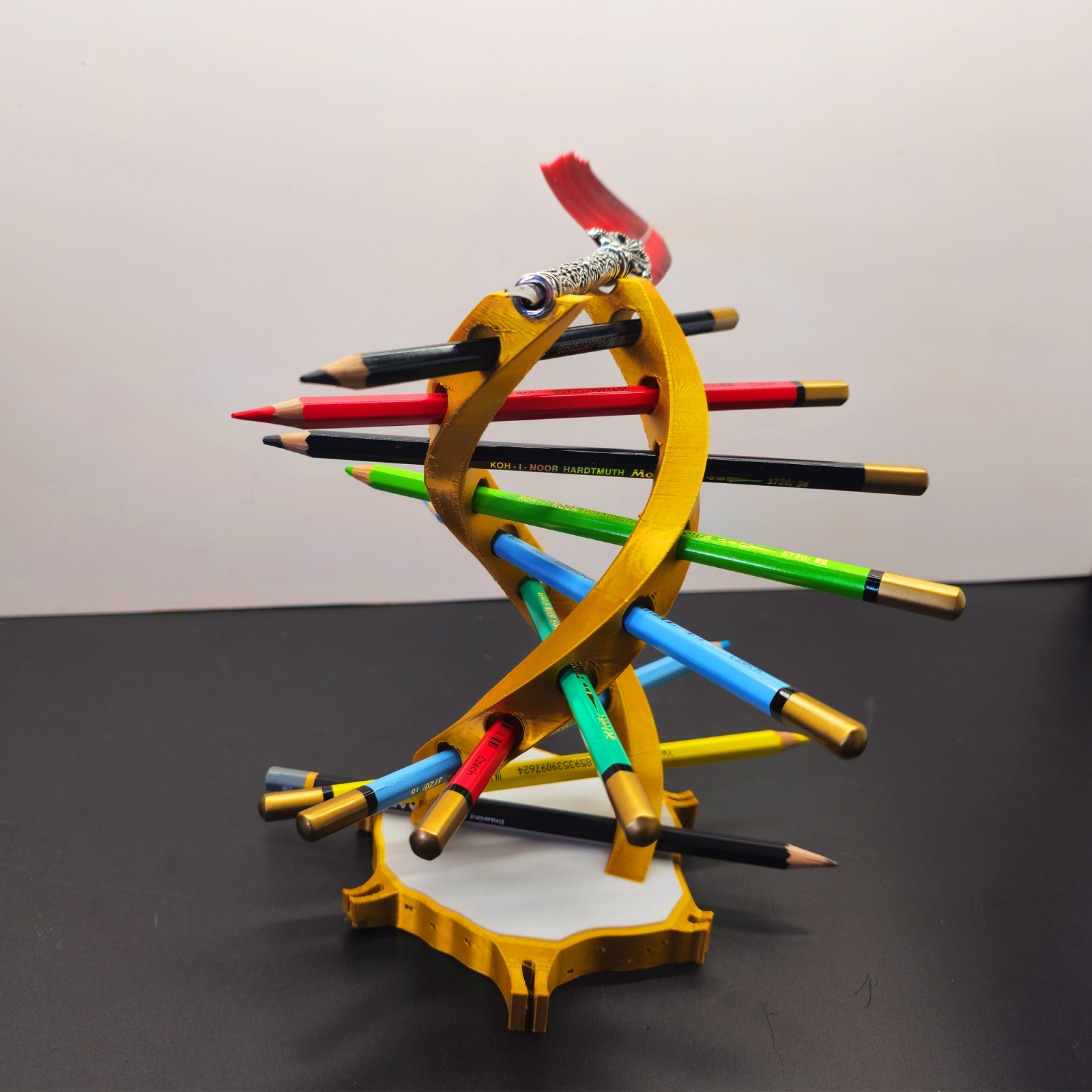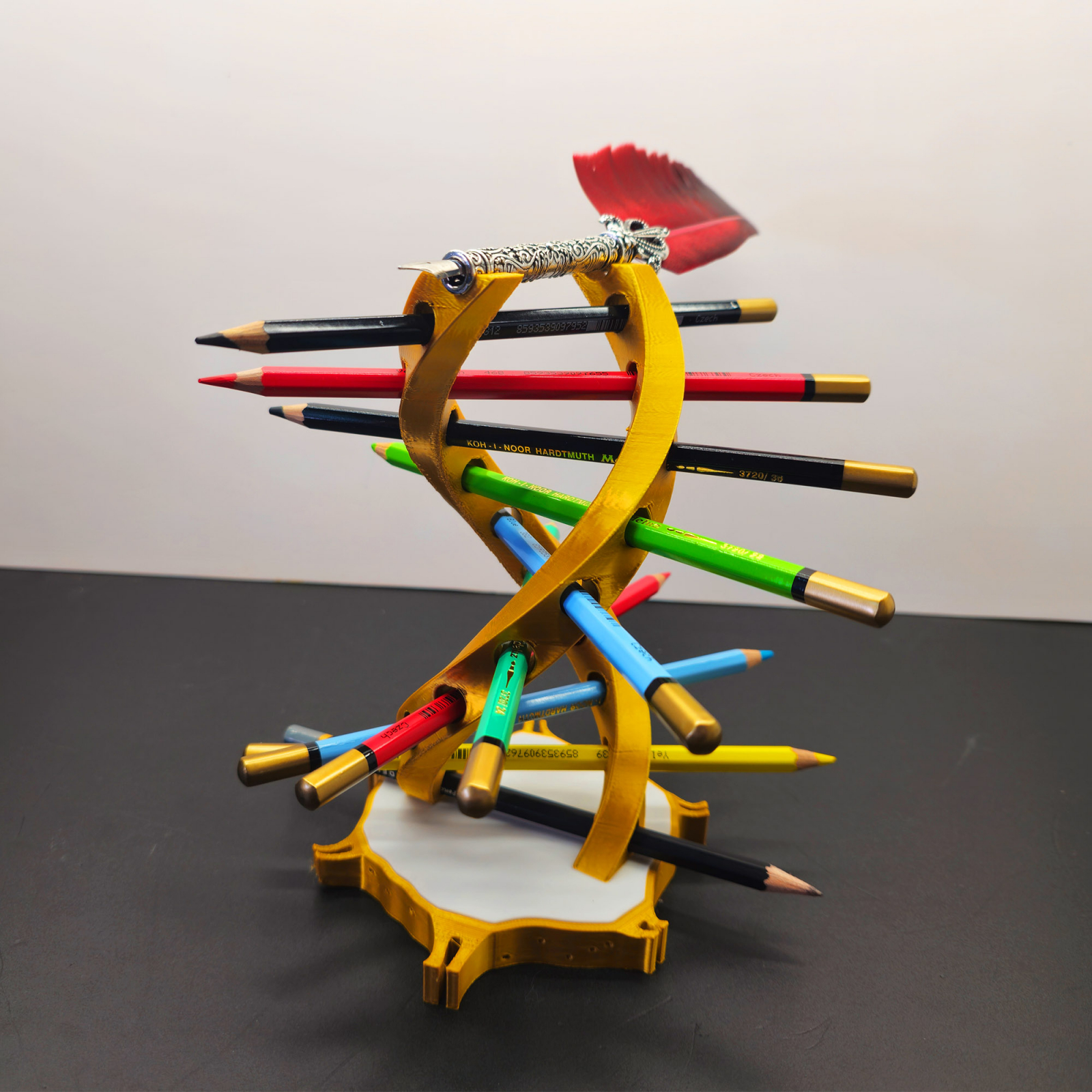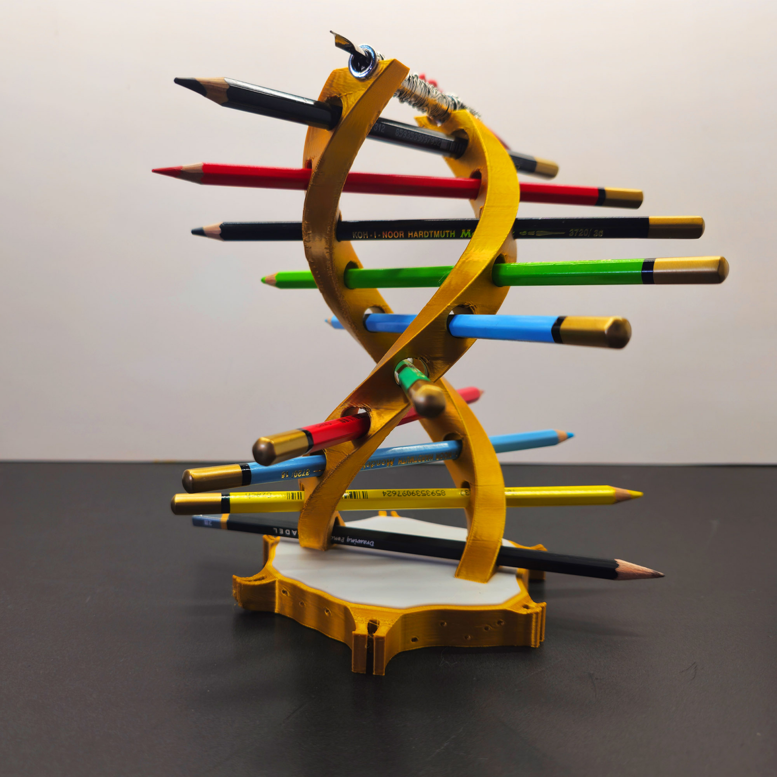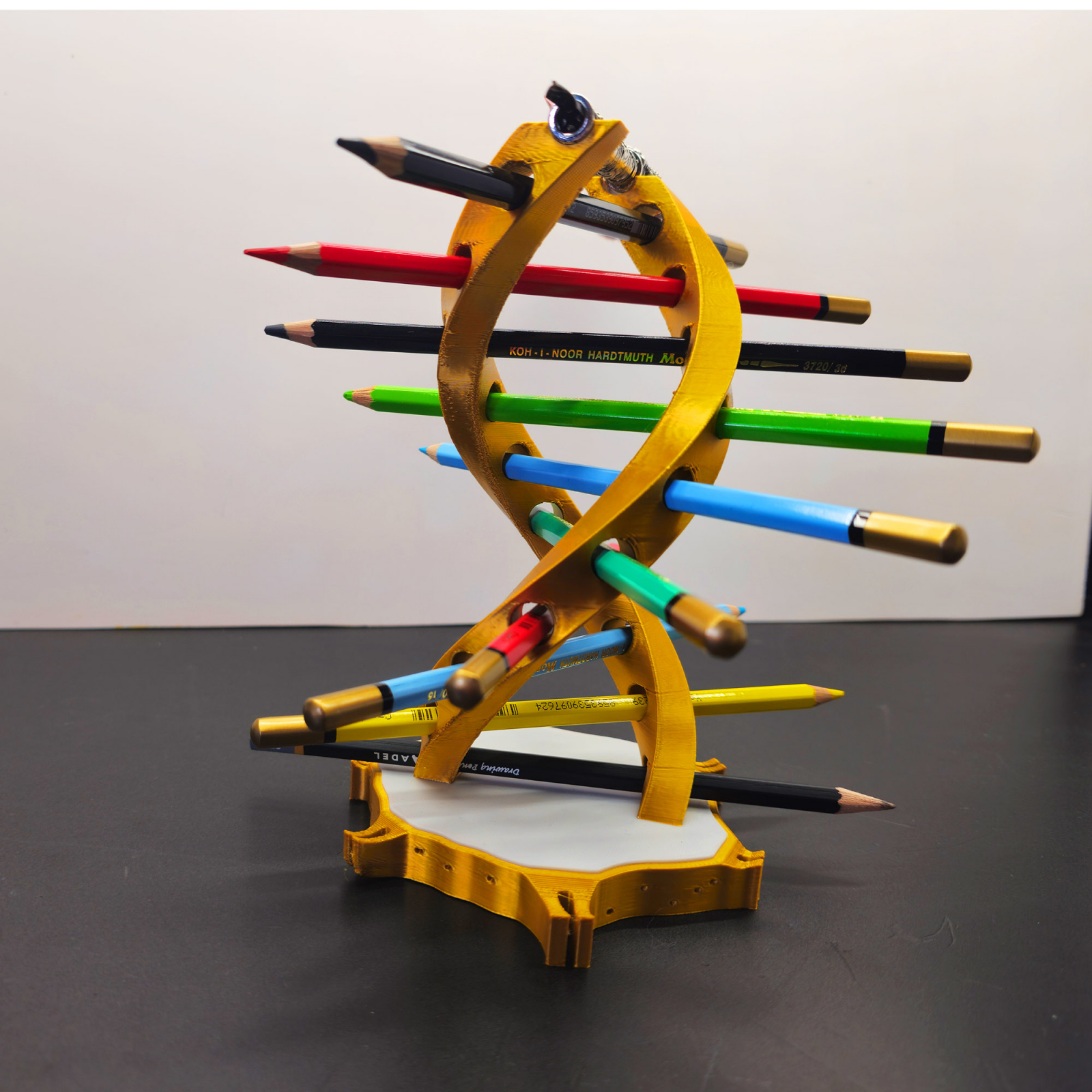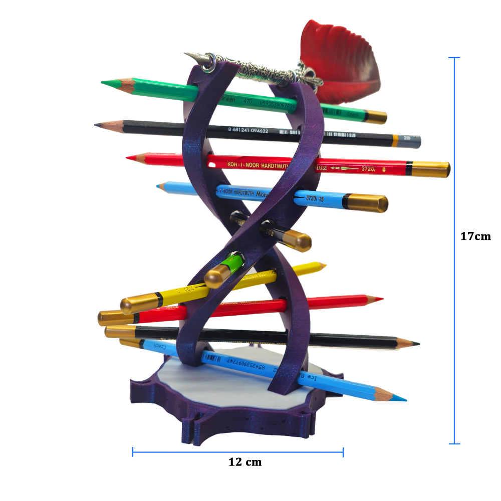 Îți prezentăm suportul de pixuri în formă de ADN uman, un element de decor funcțional și inovator pentru biroul tău! Fabricat prin imprimare 3D din PLA acest suport nu doar organizează pixurile/creioanele tale, dar adaugă și un aspect științific și artistic spațiului tău de lucru.